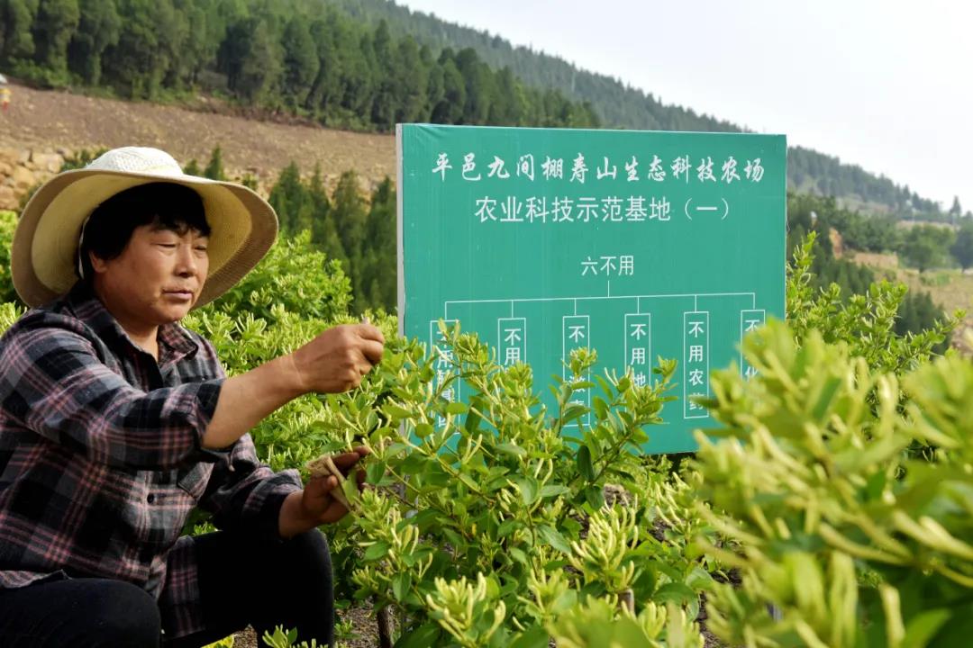 除大力發(fā)展旅游產(chǎn)業(yè)外,九間棚村還立足當(dāng)?shù)卮笠?guī)模種植金銀花優(yōu)勢,將金銀花作為重點產(chǎn)業(yè)發(fā)展,積極尋求與專家合作,先后選育出了“九豐一號”“北花一號”這兩個目前世界上最優(yōu)良的金銀花品種。圍繞產(chǎn)業(yè)化發(fā)展,成立了農(nóng)業(yè)科技公司,設(shè)立了金銀花專業(yè)合作社,建設(shè)了“生態(tài)科技農(nóng)場”,確保生產(chǎn)出零農(nóng)殘、無污染的高端金銀花產(chǎn)品,實現(xiàn)了優(yōu)質(zhì)高價,增加了村民的收入。