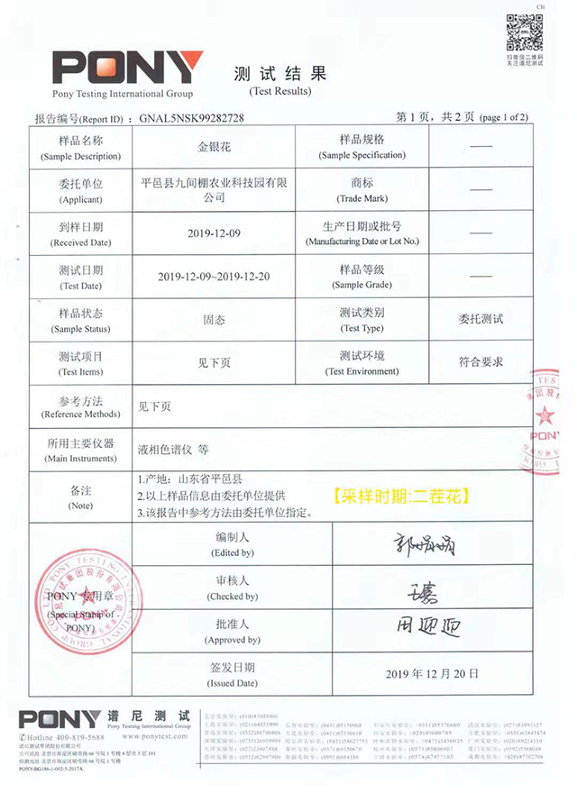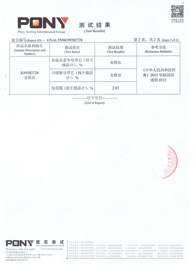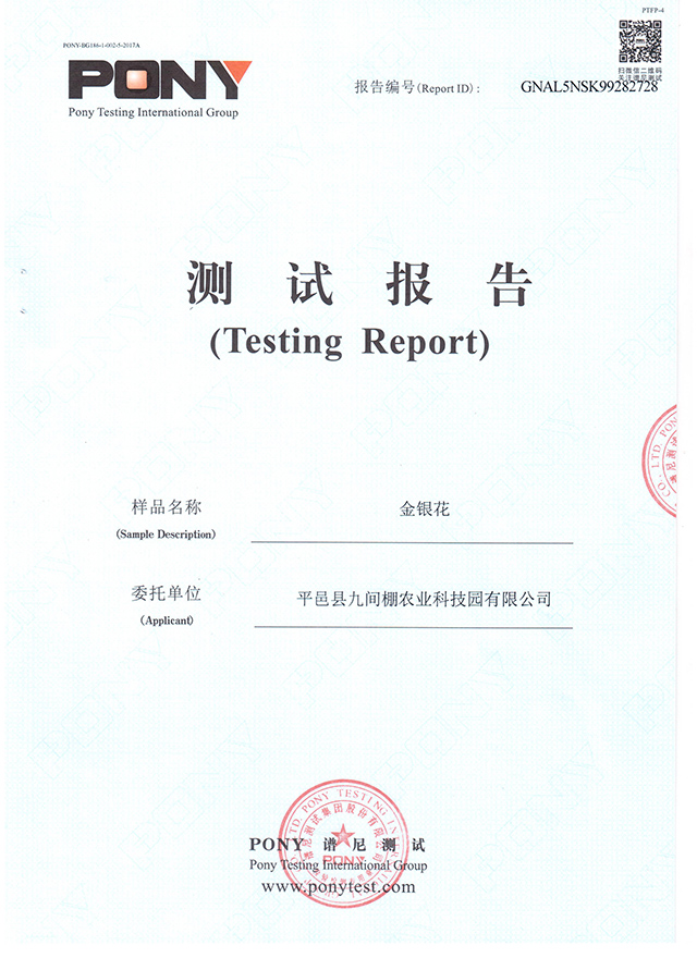 “北花一號”金銀花不含山銀花成分檢測報告(平邑樣品)