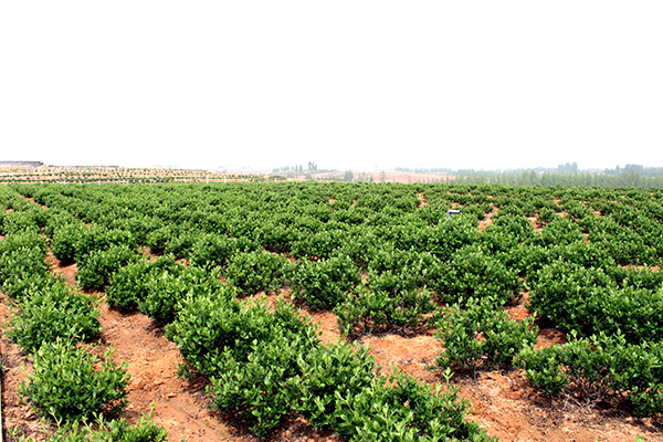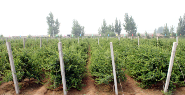 (2)主干樹形 株行距為1米×1.5米,單株栽植,每畝栽444株。 主干樹形適于平原地區、土壤肥沃的地塊采用,具有充分利用地面以上空間生長、通風透光、提高產量和質量、管理和采花方便等優點。