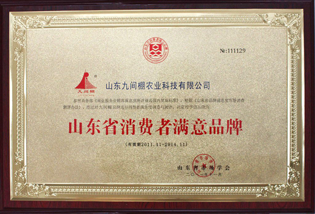 2011年11月,被評為山東省消費者滿意品牌