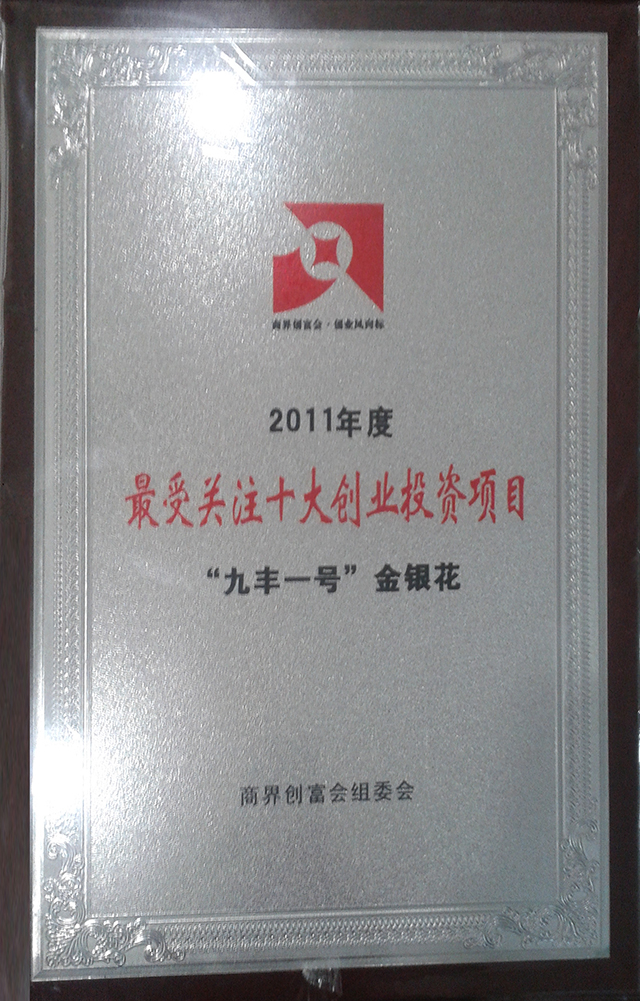 2011年12月,“九豐一號”金銀花被評為最受關注十大創業投資項目