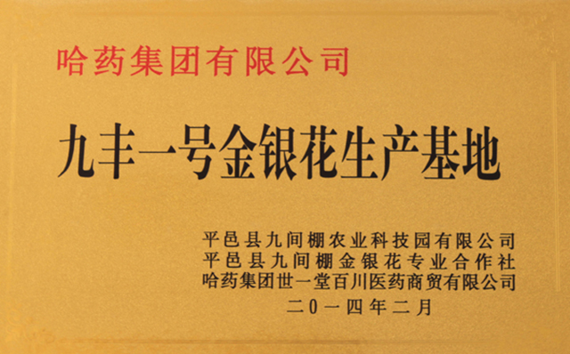 2014年2月,平邑縣九間棚農業科技園有限公司與哈藥集團合作建立九豐一號金銀花生產基地