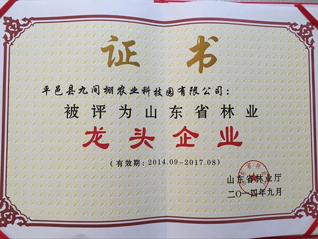 2014年9月,九間棚農(nóng)業(yè)科技園公司被評(píng)為省林業(yè)龍頭企業(yè)